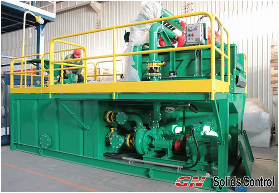 該系統是采用了兩級凈化系統設計,小顆粒分離直徑為20微米,完全可以滿足泥漿泵的工作需要,此系統 處理量為120m³米,可以保證300噸以下鉆機的全馬力下工作的泥漿需要。